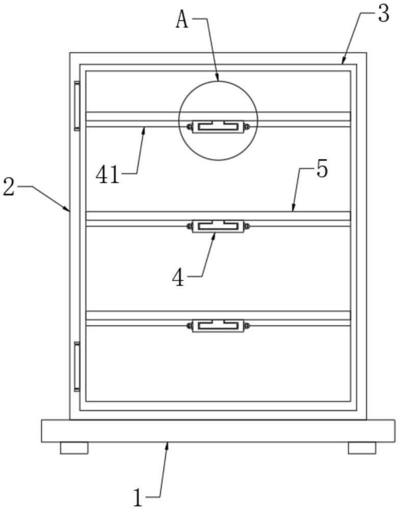本实用新型提供一种计算机模块式服务器,涉及服务器领域。所述一种计算机模块式服务器包括底座,所述底座上固定连接有机壳,所述机壳的前端侧壁上安装连接有壳门,所述机壳的内部设有多个嵌合壳。本实用新型提供的一种计算机模块式服务器通过将T形条块滑动插入嵌合壳上的形插槽中,使安装板可以与嵌合壳快捷的完成插合,安装板的实际安装使用面积不会被限制,不仅方便其拆装检修电子元件,也能够最大程度的利用其安装面积;通过两个插栓的一端与两个卡槽相重合后,两个弹簧恢复弹性形变带动两个插栓反向移动至两个卡槽中,即可快捷的实现对T形条块的锁位,从而使得安装板的安装更加方便。