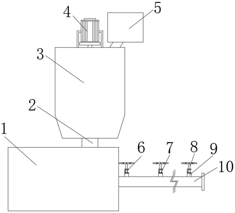 本实用新型涉及农药喷洒设备技术领域,具体涉及一种田间农药喷洒装置。该喷洒装置包括储液构件、吸液构件、输液构件和喷液构件。储液构件的内部具有容纳农药的储液腔,储液腔的出口与吸液构件的进液端相连。吸液构件包括用于吸取储料构件内部的农药并输送至输液构件中的泵体。输液构件包括用于输送农药至喷液构件中的出液管,出液管与泵体的出液端相连。喷液构件沿着出液管的延伸方向布设,喷液构件包括导液管和喷头,喷头通过导液管与出液管相连。该喷洒装置通过泵体工作,使进液管抽取储液腔内部农药,通过出液管排出农药,使喷头喷出农药,无需人力移动喷洒农药设备以喷洒农药,大大降低了农药的喷洒难度,提高了农药喷洒效率。