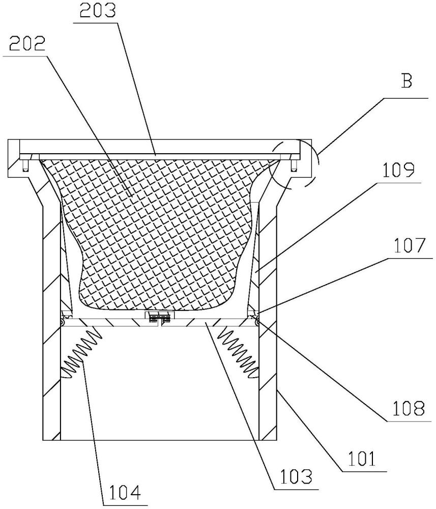 本实用新型涉及地漏技术领域,具体涉及一种防止气溶胶传播的地漏漏芯;包括漏芯主体和密封组件,密封组件包括固定板、两块挡板、两根复位弹簧、第一磁铁和两块第二磁铁,两块挡板均与漏芯主体转动连接,并对称设置于漏芯主体内,固定板设置于漏芯主体内,第一磁铁设置于固定板上,两块第二磁铁均与第一磁铁磁性连接,每块挡板上均设置有第二磁铁,每根复位弹簧的两端分别与漏芯主体和对应的挡板固定连接,通过上述结构的设置,实现了能够提高漏芯主体的密封效果,对气溶胶进行阻断,防止室内人员受到疾病感染。