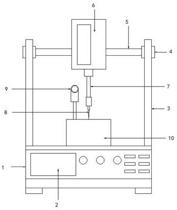本实用新型公开了一种沥青改性用针入度检测装置,包括:支架,所述支架的上部设置有台板且台板的上部设置有固定架,所述固定架与台板之间固定连接且固定架的内侧设置有螺杆,所述螺杆的表面设置有滑动块且滑动块与螺杆之间螺纹连接,所述螺杆的下部设置有滑动杆且滑动杆的表面两端均设置有固定块。本实用新型在操作台的上部设置有支撑架且支撑架的内侧设置有滑动杆,滑动杆的表面设置有滑动块且滑动块的侧面设置有支撑板,支撑板的表面设置有检测组件且检测组件的下部设置有连接杆,连接杆的下部设置有检测针,采用双支撑结构,大大增加了检测组件的稳定性。
