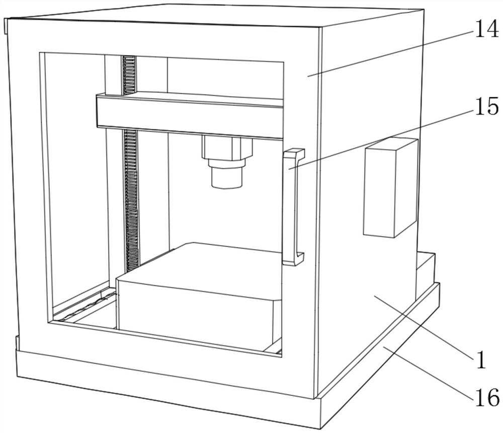 本实用新型提供一种产品3D打印机,包括打印机本体,打印机本体的内壁底部固定安装有两个连接盒,两个连接盒的顶部均开设有滑槽,其中一个连接盒的内壁两端设置有限位杆,另外一个连接盒的内壁一端转动连接与丝杆,丝杆的外部螺纹连接有第一移动块,限位杆的外部滑动连接有第二移动块,第一移动块和第二移动块的顶部均固定安装有移动机构,本实用新型有益效果:通过设有的多个固定杆和滑轨的固定,方便在使用时使移动机构在使用时更加稳定,在3D打印机头进行移动时,能够对3D打印机头进行更好的固定,使设备在使用时能够更加稳定,且通过减震垫,方便在自锁电机与步进电机运行时,能够使震动减缓,防止影响3D打印机头。