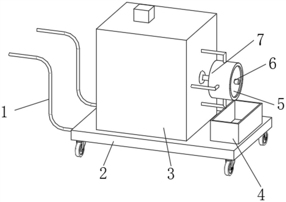 本实用新型公开了一种线缆收卷装置,其技术方案包括:内架和闸板,移动车和箱体,所述移动车顶部中间安装有箱体,所述箱体顶部中间安装有电机A,所述电机A输出轴位于箱体内部安装有收卷轮,所述箱体一侧中间通过支撑架安装有支撑环,所述支撑环内表面远离箱体一侧安装有刮板,所述支撑环内表面靠近刮板一侧安装有清洁棉。一种线缆收卷装置解决了现有的线缆收卷装置在线缆收卷过程中无法对线缆进行清洁,线缆在土木工程施工现场极易沾染泥土,导致收卷完成后的线缆洁净度变差,后续泥土板结后,影响线缆放卷使用的问题,提高了线缆的表面洁净度,从而保证了后续线缆的放卷使用。
