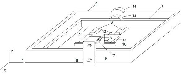 本实用新型属于电缆老化技术领域,公开了一种块状电缆样本电树生长观测盛放装置,以解决现有技术电树生长观测盛放中存在的问题,该观测盛放装置包括环氧树脂缸,环氧树脂缸内装有有机玻璃缸,有机玻璃缸的内壁一侧装有有机玻璃条,有机玻璃缸的一侧设有滑动铜板挡板,滑动铜板挡板与有机玻璃条之间装有块状电缆样本,块状电缆样本上设有钢针,钢针上接有高压引线,滑动铜板挡板上设有滑动铜板竖板及滑动铜板横板,环氧树脂缸的侧壁还设有固定铜板,固定铜板的顶部平行设置有凹槽卡板,凹槽卡板与滑动铜板横板可拆卸卡装,本实用新型结构简单、操作简便,能有效定位并固定样本,减小了定位样本工作量,提高了电树观测的实验操作效率及实验准确性。