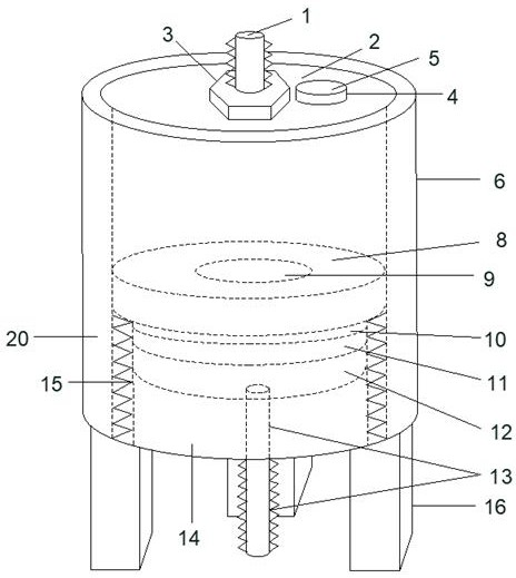 本实用新型属于电缆老化技术领域,公开了一种电缆薄片样本水树老化装置,以解决现有技术薄片样本水树老化装置中存在的技术问题,该电缆薄片样本水树老化装置包括杯体,杯体的顶部装有杯盖,杯盖上设有注水孔,杯盖上还装有上铜电极,上铜电极的下部伸入杯体内,杯体的下部内侧设有杯底,杯底的中部开设有杯底小孔,杯体的下部还设有下壁体,下壁体内侧装有薄片样本,薄片样本的中部开设有针孔,薄片样本的底部装有下铜电极,且下铜电极的中部设有连接电极,本实用新型可使薄片样本和杯底、下铜电极和薄片样本间紧密均匀贴合,可避免尺寸不一致造成的附加机械应力,保证了老化结果的准确性和可靠性,而且本实用新型结构简单、操作简便。