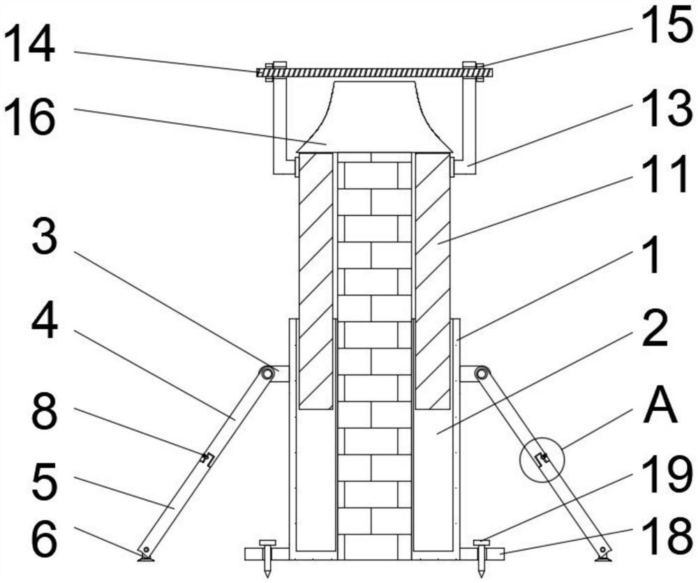 本实用新型公开了一种用于古建筑保护的加固装置,包括:加固装置主体,所述加固装置主体的内部开设有容置腔,所述加固装置主体的内部设置有古建筑主体,所述加固装置主体的外表面固定安装有第三固定块;第一支撑杆,其安装于第一固定块远离加固装置主体的一端,所述第一支撑杆的内部连接有第二支撑杆,所述第一支撑杆的内部贯穿有第一限位杆;固定杆,其固定安装于第二加固板的外表面,所述第二加固板的内部开设有第二限位槽。该用于古建筑保护的加固装置,解决了现有的古建筑保护的加固装置不具备较好的墙体保护结构,导致古建筑在自然环境下极易出现加固不牢靠的现象,进而存在一定的使用缺陷的问题。