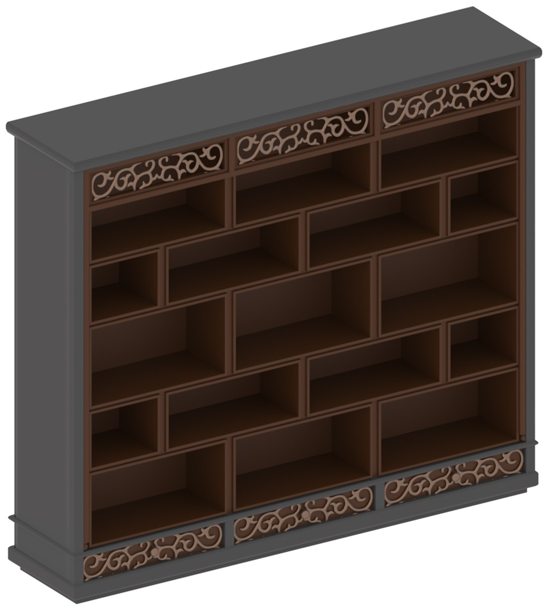 1.本外观设计产品的名称:书架(室内设计)。2.本外观设计产品的用途:本外观设计产品用于放置图书和饰品等。3.本外观设计产品的设计要点:在于形状。4.最能表明设计要点的图片或照片:立体图1。