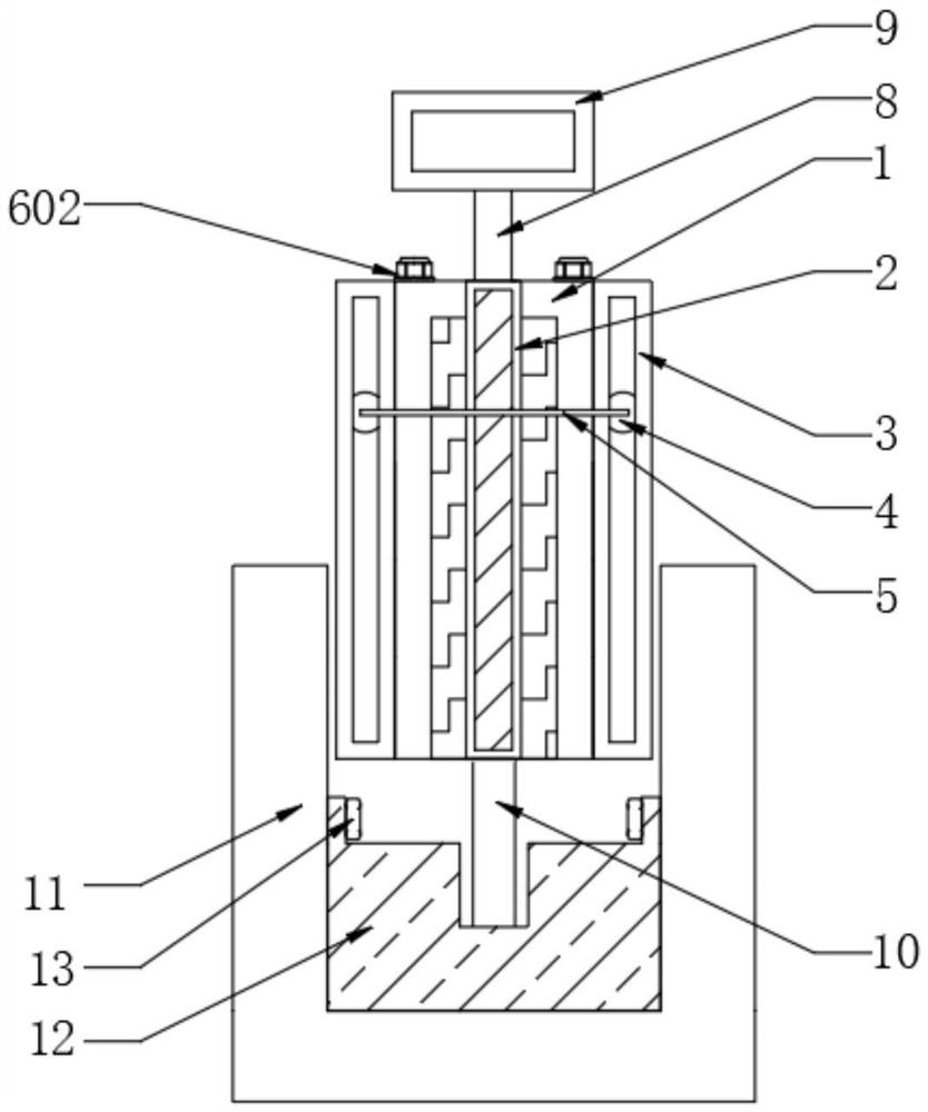 本实用新型公开了一种防黏减摩润滑剂生产用配比装置,包括壳体和齿轮。所述壳体的前端设置有数值显示表,且壳体的左右两侧均固定连接有齿条壳体,所述齿轮设置于齿条壳体的内部,所述壳体的内部上壁设置有固定组件,所述限位件的内部螺纹连接有螺纹件。该防黏减摩润滑剂生产用配比装置,通过齿条壳体、齿轮与辅助件便于不熟练的操作人员也能够精准的配比物料,能够避免物料配比不均匀的现象发生。硅胶活塞、拉伸杆与把手有利于操作人员在没电的情况下使用该设备进行工作,且不耽误工作效率,较为方便。而存放箱体、清洁海绵和固定件则有利于对设备进行存放,并且能够防止物料长时间接触空气,导致物料表面干掉,影响设备的正常使用。