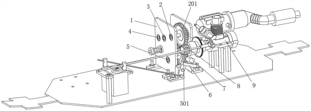 本实用新型属于玩具模型技术领域,尤其为一种具有三挡、减速、制动功能的齿轮箱,包括箱体和离合器本体,所述离合器本体安装在箱体的一侧,所述离合器本体的动力输出端具有驱动齿轮,所述箱体内部依次安装有一号轴、二号轴、三号轴、四号轴和空心轴,所述一号轴上安装有动力输入齿轮和一号小齿轮,所述二号轴上安装有二号小齿轮和一号大齿轮,所述三号轴上安装有三号小齿轮,所述四号轴上安装有二号大齿轮和三号大齿轮;本实用新型的齿轮箱中,通过多组齿轮配合使用可实现三挡调节,通过离合器旁的摩擦片的设置即可进行制动,通过离合器传递到动力输入齿轮,多组齿轮啮合实现减速,提高了齿轮箱的使用效率,便于长期推广使用。