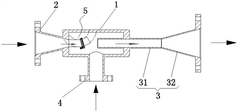 本实用新型公开了一种矢量喷嘴射流泵,涉及射流泵技术领域,包括:吸入室;高压流体入口管;中压流体出口管;低压流体入口管;喷嘴,喷嘴包括固定管和转动管,固定管的第一端与高压流体入口管伸入吸入室的一端连接,固定管的第二端具有弧形段,固定管的弧形段设置有外凸缘,转动管的第一端也具有弧形段,固定管的弧形段端面和转动管的弧形段端面为截面积相等的圆形结构,转动管的弧形段外边缘设置有齿轮环,外凸缘上均匀分布有多个齿轮,其中一个齿轮通过固定在固定管上的驱动电机驱动,多个齿轮分别与齿轮环啮合,外凸缘和齿轮环外侧套接有环形密封导向罩。本实用新型能够实现对流体喷射的矢量方向进行调节,以达到改变控制流体的喷射速度。
