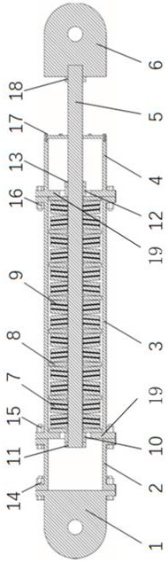 本发明涉及土木工程技术领域,具体涉及一种自复位摩擦阻尼器,应用于建筑与桥梁结构的减震控制领域。包括第一连接件、第一外套管、第二外套管、第三外套管、轴和第二连接件;第一外套管一端连接第一连接件;第二外套管、第三外套管内设有预压挡板,第二外套管内套装碟形弹簧和垫片,碟形弹簧两端分别连接垫片。自复位摩擦阻尼单元实现复位和耗能功能合二为一,整体阻尼器构造简化,长度缩减;碟形弹簧系统始终受压,阻尼器拉压等强;具有可拆卸、可更换的特点,震后仅需更换摩擦片,节约材料,维修速度快,可重复利用。