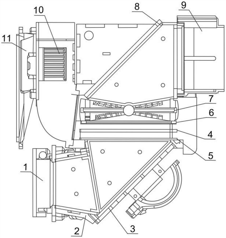 本实用新型公开了一种双反射式LCD投影仪,涡轮风扇与外部电源电性连接,该光源发出的光经过下光源反射镜片反射并通过一体式聚光杯聚集以及隔热偏振滤片形成偏振光并滤除红外光后至该第一菲林透镜,通过该第一菲林透镜形成多束平行光,该多束平行光经过LCD后产生图像,通过第二菲林透镜后聚焦,经过上成像反射镜片反射后,最终到达镜头,经过镜头最终成像至幕布通过光路系统中的上成像反射镜片以及下光源反射镜片组成双反射式光学系统有效的改变光路结构,解决现有技术中传统投影仪结构单一,体积庞大,空间利用率低等问题,使搭载此双反射式光学系统的产品机构更加紧凑小巧。