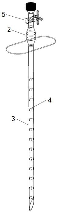 本实用新型提供了一种地下插入式滴灌装置,包括从上至下顺序连接的储水容器、连接管以及滴灌管,所述滴灌管沿其长度方向开设有滴灌孔,且滴灌管内设有吸水条。在荒漠地区植树时,可以在极短的时间内将本实用新型置于树木旁,根据地区缺水的不同程度,对装置进行调节,控制流速,使之在水资源一定的情况下,使更多树木成活。滴灌管上设有许多滴灌孔,在保证滴灌孔不被堵塞的情况下,水分将会最大程度被树木吸收,同时,顶端设有储水容器,保证了较长的更换周期,在节水的同时,减少劳动力,树木也因此更容易成活。本实用新型在某些大型的灌溉系统出现问题时,能够成为救急的简易装置,代替人力进行灌溉,在一定的程度上挽救损失。