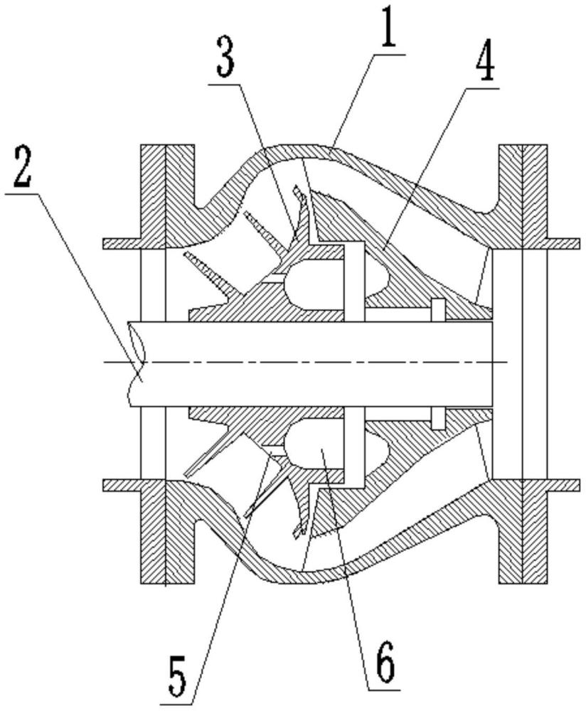 本实用新型公开了一种无堵塞矿浆泵,属于多相流泵技术领域,包括泵体,以及位于泵体内的泵轴,其中在所述泵轴上分别设有螺旋叶轮和空间导叶,所述螺旋叶轮分为螺旋段和离心段,在所述螺旋叶轮轮毂同一高度处的圆周方向上均匀布置有若干平衡孔,该螺旋叶轮的开放式结构使得叶轮和泵体内壁之间形成开阔的螺旋形通道,使被输送固液两相介质在获得能量的同时,极大提高了颗粒在叶轮内的可通过性。与传统多叶片闭式叶轮结构相比,本实用新型所提供的方案优化了泵内液相和颗粒流动,从根本上解决了矿浆泵输送含颗粒固液两相流时的堵塞问题,此外,设置在叶轮上的平衡孔还能有效平衡螺旋叶轮旋转过程中产生的轴向压力,确保整机高效稳定运行。