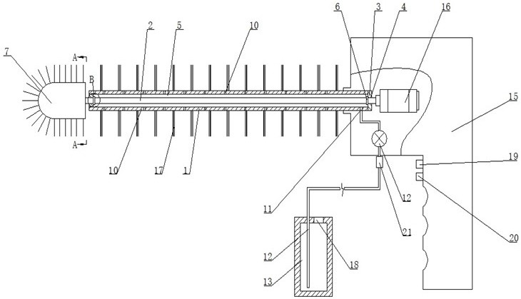 本实用新型提供了一种实验室试管电动清洁装置,包括套管,所述套管内设有转轴,所述转轴的一端可拆卸的安装有毛刷头,所述转轴与套管的内壁之间形成容水腔,所述套管的侧壁设有多个喷水孔,所述套管远离毛刷头的一端连接有手柄,所述手柄呈空心壳体结构,所述手柄内设有电机,所述电机与转轴远离毛刷头的一端相连接。本实用新型设置可转动的毛刷头,通过电机带动其转动并对试管内壁进行清刷,高效快捷,节省人力,清洁效果好,尤其是对于试管底部,具有良好的清洁效果;在套管上设置喷水孔,将清水输入套管的容水腔内从喷水孔喷出,对试管内壁进行喷水清洁,进一步提高清洁效果;结构简单,使用方式便捷。