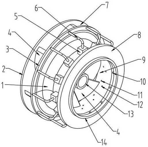 本发明提供了一种自循环射流抗空化结构及具有抗空化结构的离心泵,属于离心泵技术领域,用于解决现有离心泵抗空化性能较差的问题。在叶轮轮缘外侧设置由储液箱和通流管组成的自循环腔体结构,通流管、储液箱和射流孔使叶轮轮缘外侧形成连通的高压回路系统,通过控制第一射流孔和第二射流孔的开通和闭合,实现不同工况条件下的连通,叶轮出口流道的流量通过连通管流入储液箱中,再通过不同位置的射流孔射入叶轮进口流道,从而产生向流场施加射流的作用,能够实现不同工况条件下对叶片前缘流动分离区域进行补偿,实现自调节,从而有效解决离心泵由于偏工况运行造成的空化问题,提高离心泵运行稳定性;不需要外加射流结构,结构简单,易于实现。