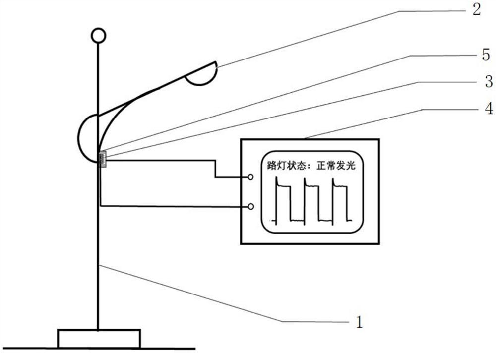 本实用新型公开了一种基于铁电材料的自驱动路灯故障远程监测系统,包括安装于各路灯杆上且位于对应路灯杆上路灯的光照区域内的光电传感装置和用于显示各路灯杆上光电传感装置发生光电效应而产生的电信号的信号显示装置;所述光电传感装置包括铁电材料,所述铁电材料的两侧镀有电极,所述铁电材料两侧的电极通过导线与信号显示装置连接;所述光电传感装置外设有透明的密封壳。本实用新型结构简单、灵敏度高、制作成本低、环保、防水以及在没有外接电源的情况下就能实现对路灯发光状态的远程监测。