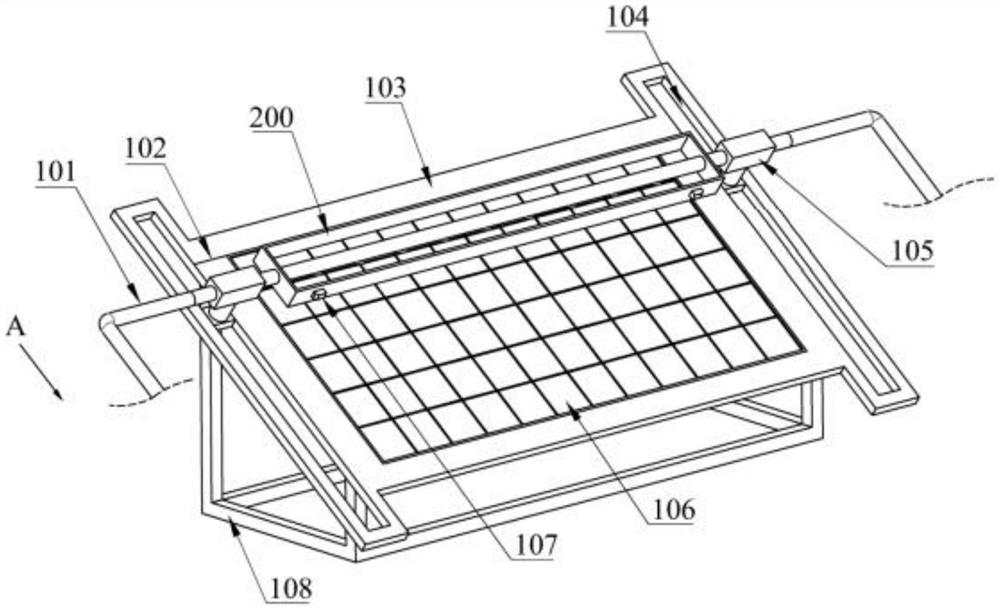 本实用新型公开了一种基于灰尘厚度检测的太阳能光伏电板自动清洁系统,属于光伏技术领域,其包括:光伏支架;安装在光伏支架上的光伏边框;清洁装置,可滑动地安装在光伏边框上;供水装置,供水装置与清洁装置连通;驱动装置,安装光伏边框上;控制单元,供水装置、驱动装置与控制单元电连接;传感器单元,安装在清洁装置上,并且在传感器单元对太阳能光伏电板表面的灰尘进行测量后,将数据传至控制器进行处理得灰尘厚度。本实用新型提能够自动对太阳能光伏电板进行清洁,效率高,且耗水量少。