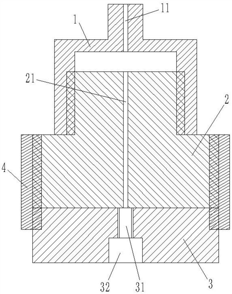 本实用新型属于非晶合金齿轮的制备技术领域。本实用新型公开了一种非晶合金齿轮的铸造模具,包括盖子、上模、下模和固定环;其中,所述盖子上设有通气孔,所述上模设有沿其轴向贯穿的气道,所述下模设有型腔和直浇道,所述型腔的内部设有轮齿并且与所述直浇道连接,所述直浇道用于引入合金熔体至所述型腔;所述盖子用于与铸造连杆连接,并且所述盖子能够与所述上模形成连接,使所述气道与所述通气孔连通;所述固定环用于所述上模与所述下模之间的轴向密闭连接,并且所述气道与所述型腔形成连通。通过采用本实用新型提出的非晶合金齿轮铸造模具,可以制备获得具有更高屈服强度和疲劳强度以及表面光洁度和尺寸精度的非晶合金结构的微齿轮铸件。