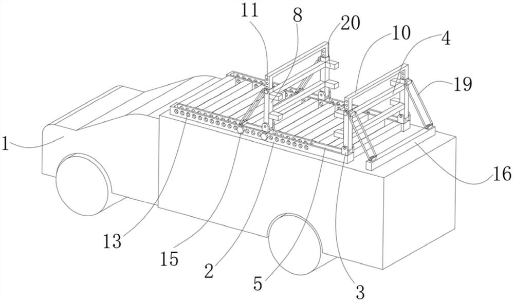 本实用新型涉及连接结构技术领域,特别是一种电力巡检小车外挂设备的连接结构,包括电力巡检车本体,所述电力巡检车本体的顶部固定连接有安装架。本实用新型的优点在于:通过所述滑板、第二铰接座、移动定位架、第二定位孔、第三定位孔和第二定位螺栓的配合设置,使得该连接结构能够对不同长度的设备进行固定连接工作,通过所述空槽、延伸定位架、第一定位孔和第一定位螺栓的配合设置,使得该连接结构能够对不同高度的设备进行固定连接工作,使得该连接结构不再是固定式的,能够根据设备的实际情况来进行调整,扩大了该连接结构的使用范围,操作简便,能够快速的对设备进行固定连接工作,达到了提高连接设备效率的效果。