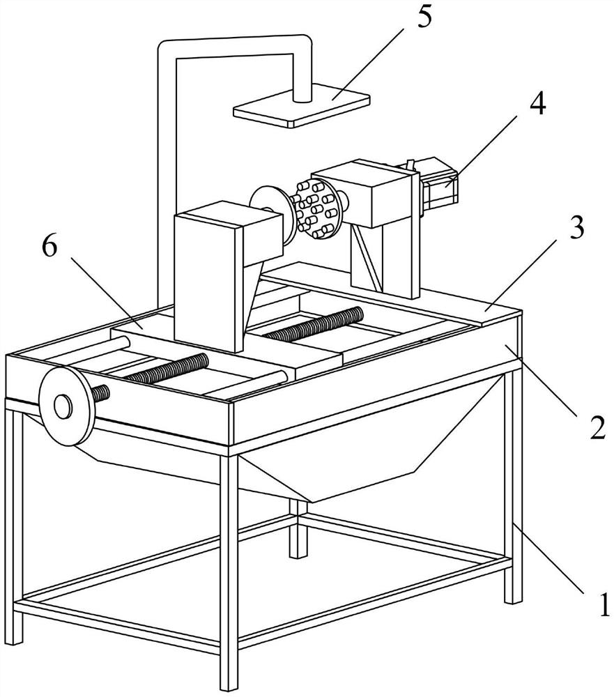 本实用新型公开了一种汽车零件表面喷涂处理装置,包括机架体,外框架,安装板,旋转机构,喷涂机构和滑动夹紧装置,本实用新型,通过设置旋转机构,在对零件喷涂前,首先将零件夹持在第一旋转盘和第二旋转盘之间,调速电机通过传动轴带动第一旋转盘缓慢旋转,从而实现零件的旋转,无需人工对零件进行翻转,有效的提高了零件的喷涂效率,降低了人工劳动强度;通过设置喷涂机构,循环泵通过循环管将喷涂液箱的喷涂液输送至喷淋头内,实现了对零件的喷涂,多余的喷涂液流回喷涂液箱内,实现了喷涂液的循环利用,并节省了生产成本。