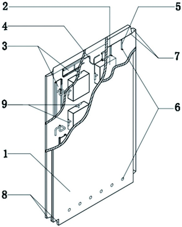 一种铝合金龙骨内嵌草砖复合石膏预制墙板,包括墙板主体(1)、植物秸秆草砖(2)、铝合金龙骨(3),墙板主体(1)内嵌植物秸秆草砖(2),植物秸秆草砖(2)上下左右设有锚杆(9);墙板主体(1)上下左右布置两层铝合金龙骨(3),两层铝合金龙骨(3)由连接件(4)连接;墙板主体(1)上端顶面与下端底面设有螺纹钢筋承插孔(5),墙板主体(1)上端两侧面与下端两侧面设有压浆孔(6),墙板主体(1)上端与右端设有凸榫头(7),墙板主体(1)下端与左端设有凹榫头(8)。