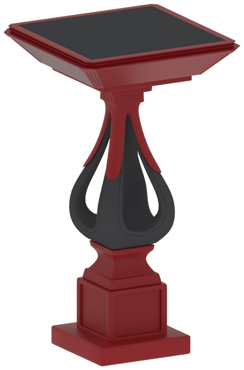 1.本外观设计产品的名称:展台(水滴镂空)。2.本外观设计产品的用途:本外观设计产品用于展示物品。3.本外观设计产品的设计要点:在于形状。4.最能表明设计要点的图片或照片:立体图1。