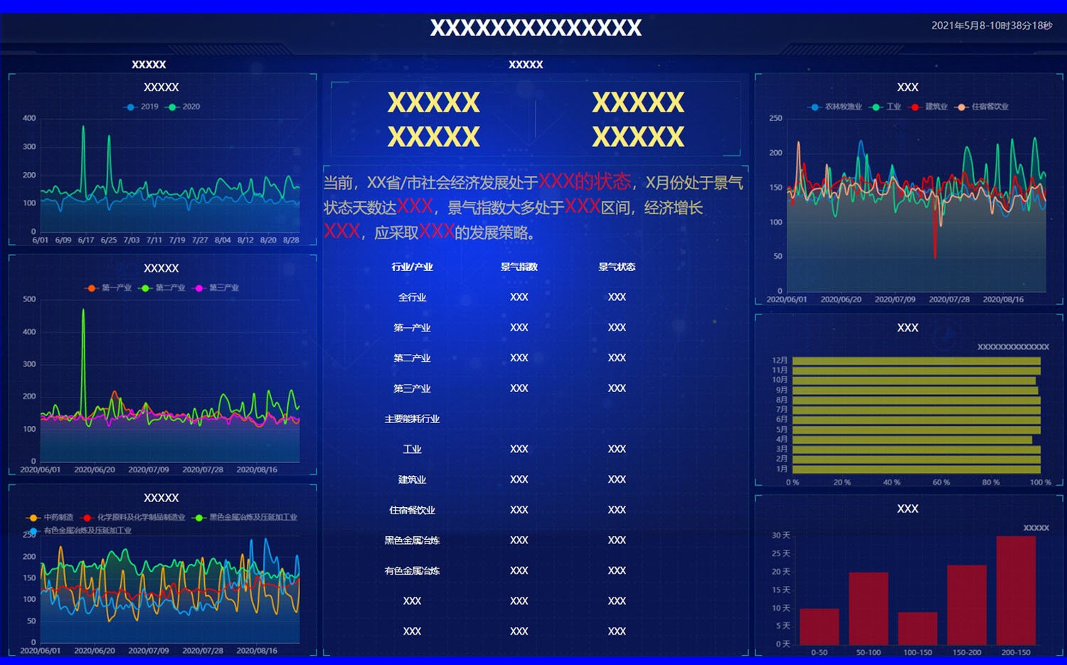 1.本外观设计产品的名称:用于显示屏幕面板的数据汇总图形用户界面。2.本外观设计产品的用途:本外观设计产品用于图像显示、运行程序,该显示屏幕面板用于手机、电脑。3.本外观设计产品的设计要点:在于形状。4.最能表明设计要点的图片或照片:主视图。5.显示屏幕面板为惯常设计,省略其他视图。6.图形用户界面的用途:用于数据显示,信息查看,平台管控。主视图点击相应模块即可查看相应的信息,“X”表示可替换内容。