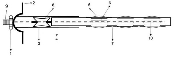 本申请涉及一种可回收快速拼装锚杆结构,该锚杆结构包括对应自由段的上套管(3)和对应锚固段的下套管(7);下套管(7)的后端嵌套于上套管(3)的前端,前端向前延伸的部分沿轴向设有多个锚固体(6);上套管(3)后端设置张拉机构,张拉机构与锚固体(6)之间通过链杆(4)连接,链杆(4)能够在张拉机构的作用下前后运动,进而带动锚固体(6)向内收缩或向外扩张。本申请中,锚固体的形成不需要电力供应,且方便快速拼装。此外,锚固体由刚性材料制成,刚度较大,抵抗变形能力强,锚固力稳定;增设由负泊松比结构耗能器,锚固力逐级实现,形成柔性支护结构,安全的同时可节约成本。