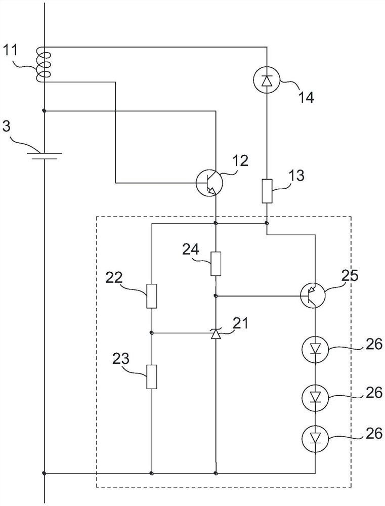 本实用新型公开了一种锂电池充电均衡电路,包括若干相互串联的锂电池,每个所述锂电池都并联一个均衡模块,所述均衡模块与所述锂电池的正极之间以一个电流识别模块连接。本实用新型的有益效果是:通过电流识别模块来识别该电池组是否处于充电状态,如果处于充电状态,则为其连接均衡模块使得电池组充电均衡。如果电池组不处于充电状态,则断开均衡模块,避免因为均衡模块的接入而消耗电量,使得在不充电的时候自耗电过大。