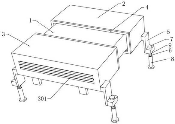本实用新型公开了一种冷热电联供装置安装机构,包括装置本体,所述装置本体的一侧套装有外壳一,外壳一的壳体上安装有散热风扇,装置本体的另一侧套装有外壳二,外壳二的壳体上设有进气孔,外壳一和外壳二相互靠近的一端粘接有密封条,外壳一和外壳二的两端固定连接有支撑板,支撑板设置成L型,支撑板底部插装有活动杆,活动杆位于支撑板上端固定连接限位块,活动杆下部套装有支撑管,本实用新型中,将外壳一和外壳二套装在装置本体外侧,启动电机带动半丝杆转动,使得螺纹套沿着半丝杆向电机方向移动,滑套沿着滑杆滑动,滑块沿着滑孔滑动,使得外壳一和外壳二相互靠近,外壳一和外壳二对装置本体起到保护的作用。