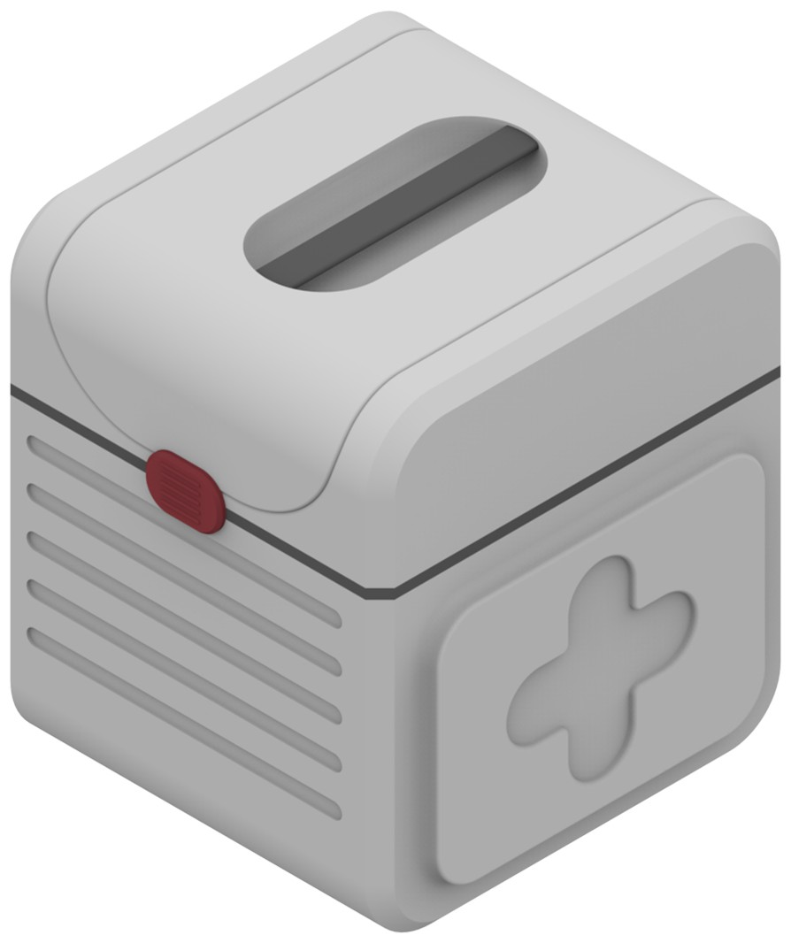 1.本外观设计产品的名称:可携带式多功能医药箱(2)。2.本外观设计产品的用途:用于存放医药用品。3.本外观设计产品的设计要点:在于形状与色彩的结合。4.最能表明设计要点的图片或照片:立体图1。5.请求保护的外观设计包含色彩。