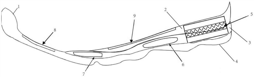 摘要:本实用新型公开了一种多功能鞋底及鞋,所述鞋底由外到内包括鞋底第一层、鞋底第二层、鞋底第三层,所述鞋底第一层设有加热模块,所述鞋底第二层设有电源管理模块、通讯模块,所述鞋底第三层脚心部位设有按摩模块,在鞋底后跟处的鞋底第二层与鞋底第三层之间设有由压电材料制成的点阵式采集装置;本实用新型采用压电材料制成的点阵式采集装置将人体行走时踩压的机械能转换为电能,具有自发电功能、无需额外电源与蓄电池,进一步减轻了鞋底的重量,采用压电材料制成的点阵式采集装置进行能量收集的方式更是无污染、无排放,很好的达到了节能减排的效果,为社会以及环境的可持续发展贡献力量。