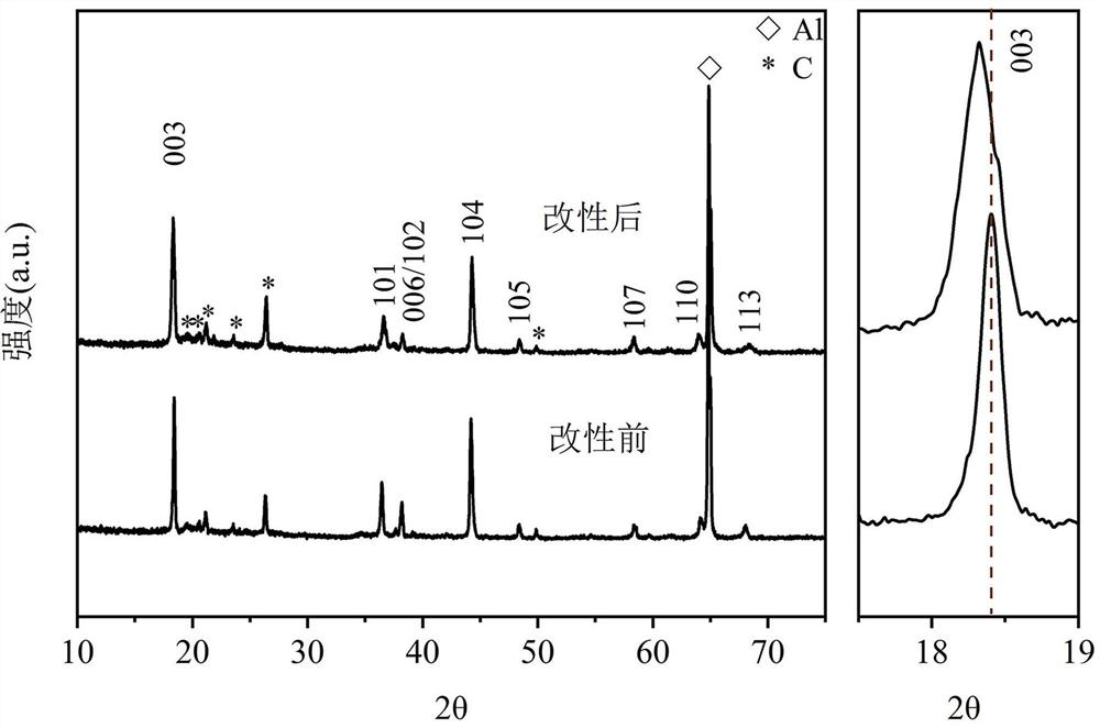 摘要:一种正极材料改性方法,其步骤为:(1)配制双草酸硼酸盐‑碳酸乙烯酯/碳酸二乙酯改性电解液;(2)用配置的改性电解液和待改性正极材料组装电池;(3)将组装的电池在一定充放电电压范围下,控制恒电流充放电电流密度,进行电化学循环;(5)循环结束后,取出正极,将正极用EC清洗,即可获得改性后的正极材料。本发明提供的正极材料改性方法可以实现对正极材料的同步掺杂‑包覆双重改性,既可以改善材料锂层环境,又可以增加界面稳定性,提升正极材料的循环稳定性。