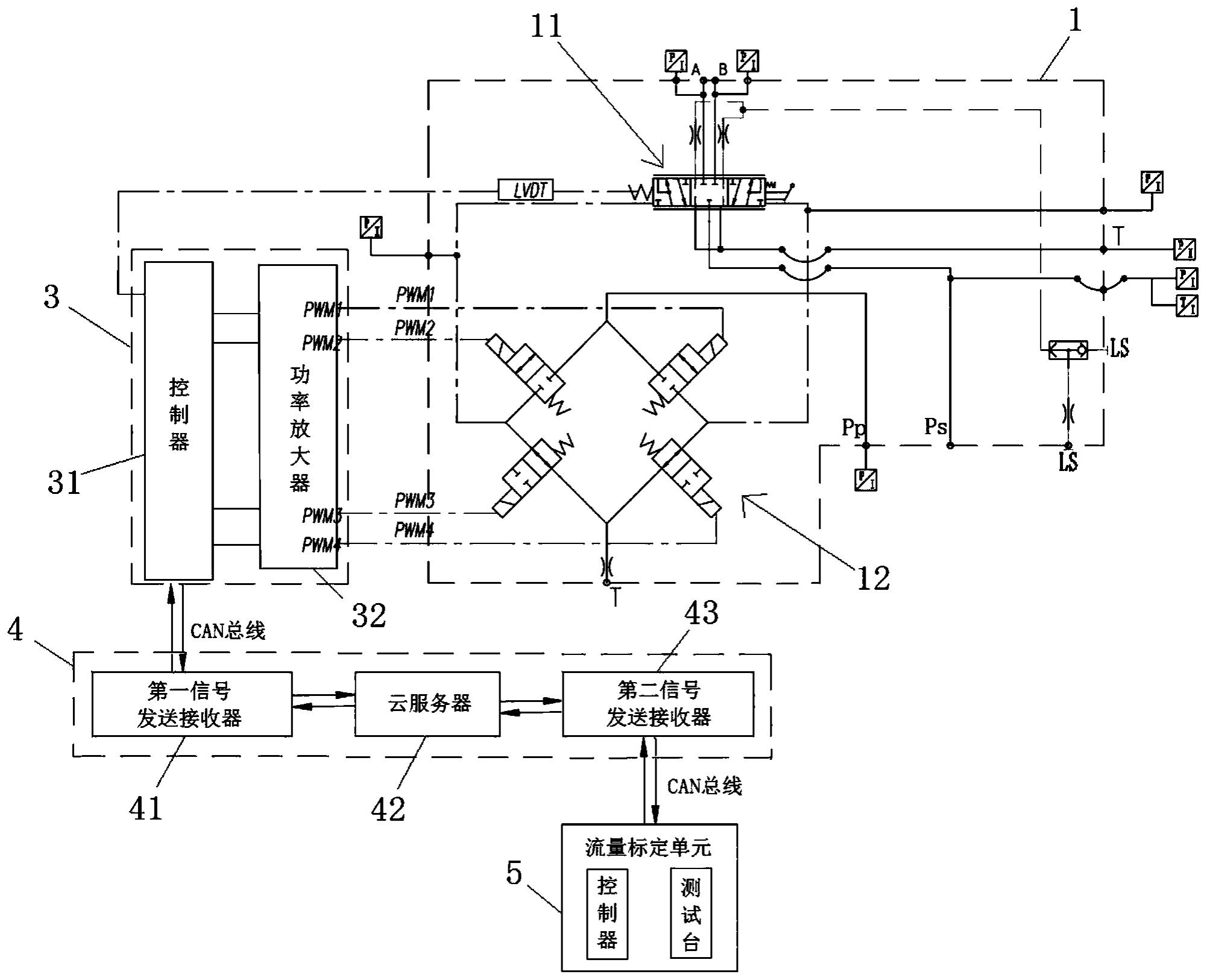 摘要:本发明属于数字比例阀控制技术领域,公开了一种数字比例阀流量控制系统包括数字比例阀、采集单元、阀控单元、传输单元和流量标定单元;采集单元获取数字比例阀工况参数并传输至阀控单元;阀控单元获取采集单元发送的数字比例阀工况参数,并通过传输单元发送至流量标定单元;流量标定单元根据数字比例阀工况参数获得标定流量,生成标定流量表;阀控单元再通过标定流量表中的标定流量与需求流量确定偏差流量,并根据偏差流量调整数字比例阀中主阀口的开度;标定流量表包括流过主阀口的介质温度、主阀口两侧的压力差、主阀口的开度和标定流量。本发明的数字比例阀流量控制系统直接以流量为参考调整数字比例阀的主阀芯位置,实现真正的流量控制。