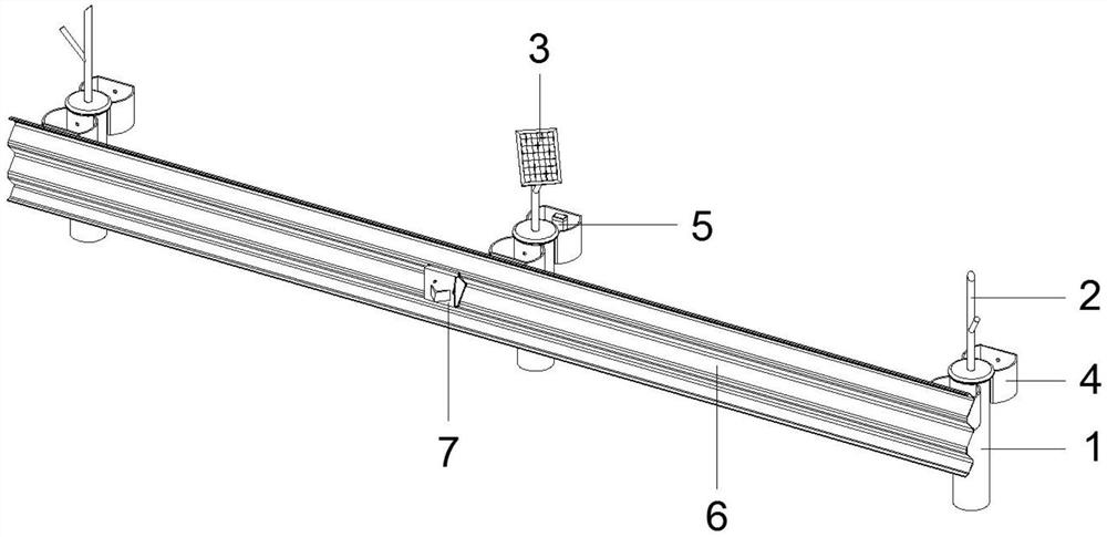 摘要:本实用新型提供了基于太阳能的道路预警系统,包括:立柱、信号发生装置、信号接收装置;所述支架通过焊接方式安装在立柱上,且太阳能电池板通过螺栓固定安装在支架的上方;所述缓冲圈通过螺栓固定安装在立柱的上部,且蓄电池通过螺栓固定安装在缓冲圈的内壁上;所述护栏通过螺栓固定安装在缓冲圈上,且信号发生装置通过螺栓固定安装在护栏的外壁上;本实用新型通过对基于太阳能的道路预警系统的改进,具有结构设计合理,当前方车辆出现意外事故发生碰撞时会将该信息发送至后方的信号接收器,提醒后方车辆、防止二次事故的发生,将事故损失降到最低的优点,从而有效的解决了本实用新型提出的问题和不足。