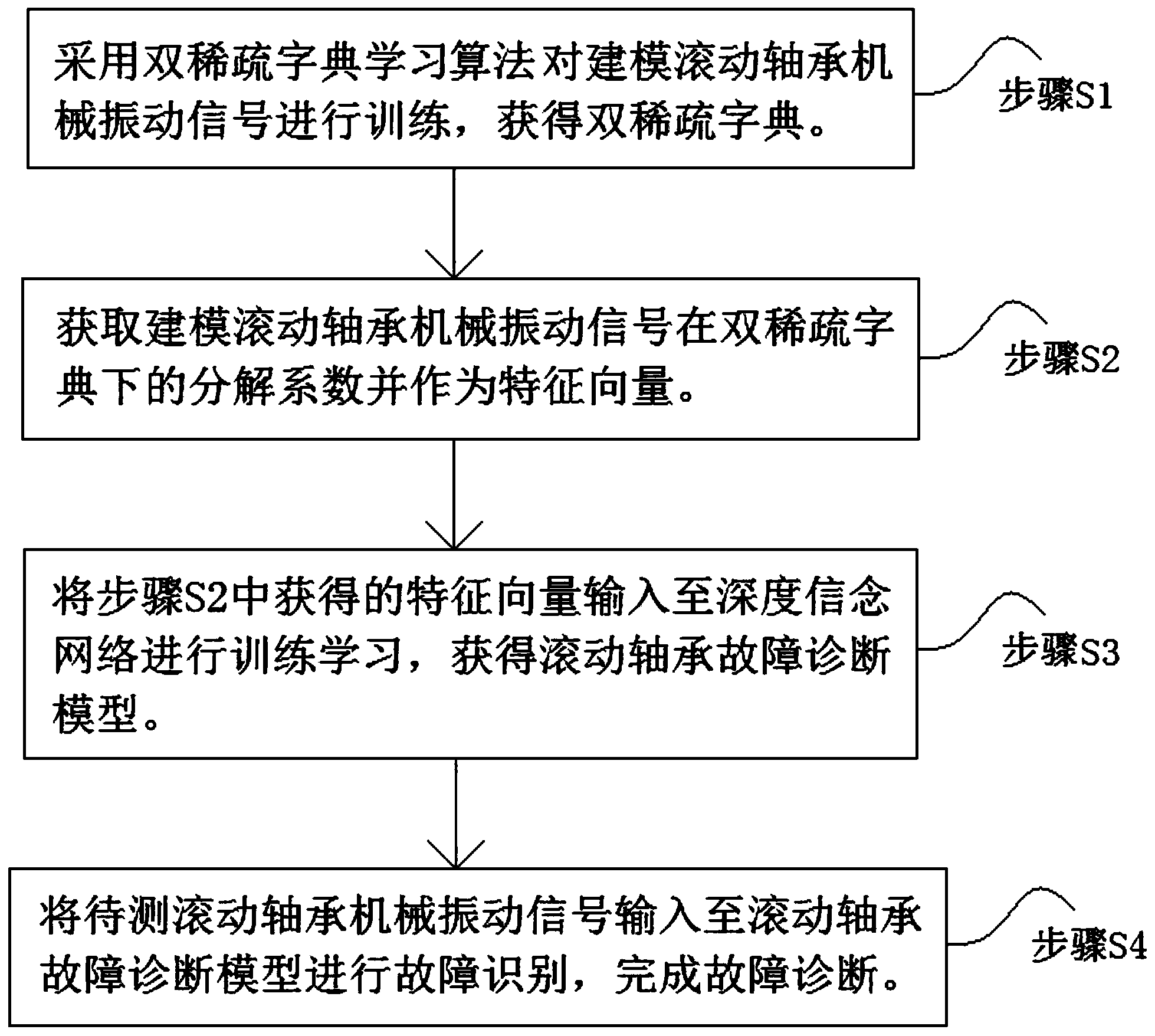 摘要:本发明属于滚动轴承故障诊断技术领域。本发明公开了一种基于双稀疏字典稀疏表示的滚动轴承故障诊断方法,步骤S1,采用双稀疏字典学习算法对滚动轴承振动信号进行训练,获得双稀疏字典;步骤S2,获取不同故障类型的建模滚动轴承振动信号在双稀疏字典下的分解系数并作为特征向量;步骤S3,将步骤S2中获得的特征向量输入至深度信念网络进行训练学习,获得滚动轴承振动信号故障诊断模型;步骤S4,将包含故障信息的待测滚动轴承振动信号输入至故障诊断模型进行故障识别,完成故障诊断。采用本发明滚动轴承振动信号故障诊断方法,不仅可以获得更高的诊断精度与准确率稳定性,并且还可以大幅度减少深度信念网络的训练与测试时间,提高对故障的诊断效率。
