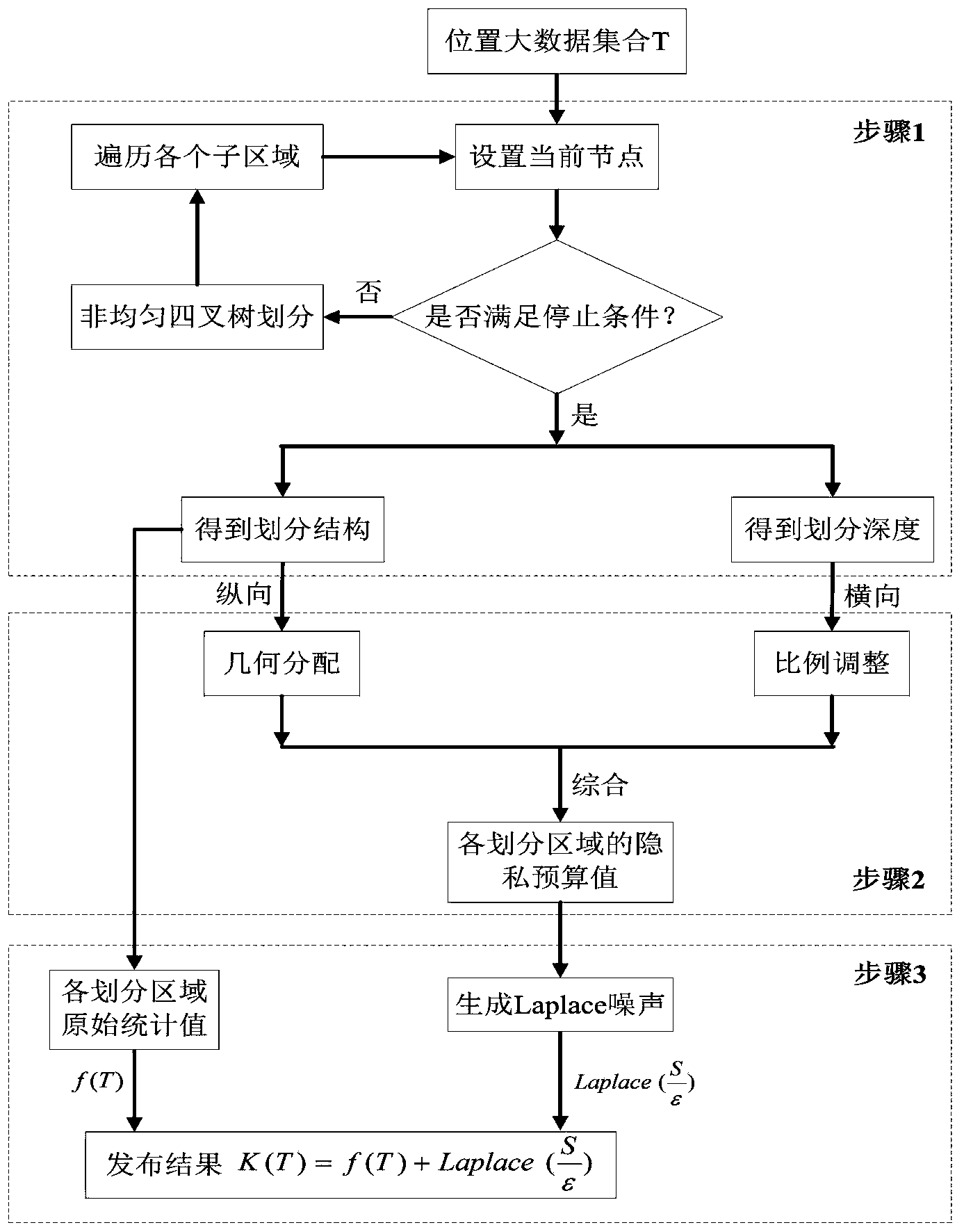摘要:基于非均匀四叉树的位置大数据差分隐私划分发布方法,主要解决现有位置信息发布方法综合性能差的缺陷,提高位置大数据的发布隐私保护强度和范围计数查询精度。首先通过分析待发布位置大数据集合的分布特性确定划分结构与划分深度,对于不满足均匀性条件的二维区域按照深度优先原则进行非均匀四叉树迭代划分,直到满足算法的停止条件;然后按照“先纵向几何分配,再横向比例调整”的原则为划分结构中的各个子区域分配差分隐私预算,先根据非均匀四叉树的划分深度计算各层应当分配的几何隐私预算值,再根据同一棵子树内四个节点的密度比例进行隐私预算的局部调整;最后将各个划分区域内的原始统计值与差分隐私噪声相加,得到最终的发布数据。