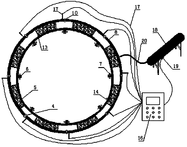 摘要:一种充气减隔震隧道衬砌结构及施工方法,属于隧道工程抗震技术领域。结构包括组合式玻璃钢衬砌管片、管片连接件、大变形止水带、位移监测装置和智能液压充气装置;组合式玻璃钢衬砌管片由内外两层弧形玻璃钢板、阻尼棒和充气气囊构成;内外层弧形玻璃钢板用阻尼棒连接并在沿环向的两排阻尼棒之间夹设充气气囊形成组合式玻璃钢衬砌管片;大变形止水带粘结在外层弧形玻璃钢板连接缝的内外两侧;位移监测装置由激光位移计和电脑用通讯线相连组成;智能液压充气装置由液压气泵、智能开关和充气气管组成。本发明使用充气减隔震可拼装衬砌管片代替传统混凝土衬砌,利用气囊和阻尼棒的缓冲减震性能,对地震荷载起到良好分散作用,提高了隧道的抗震等级。