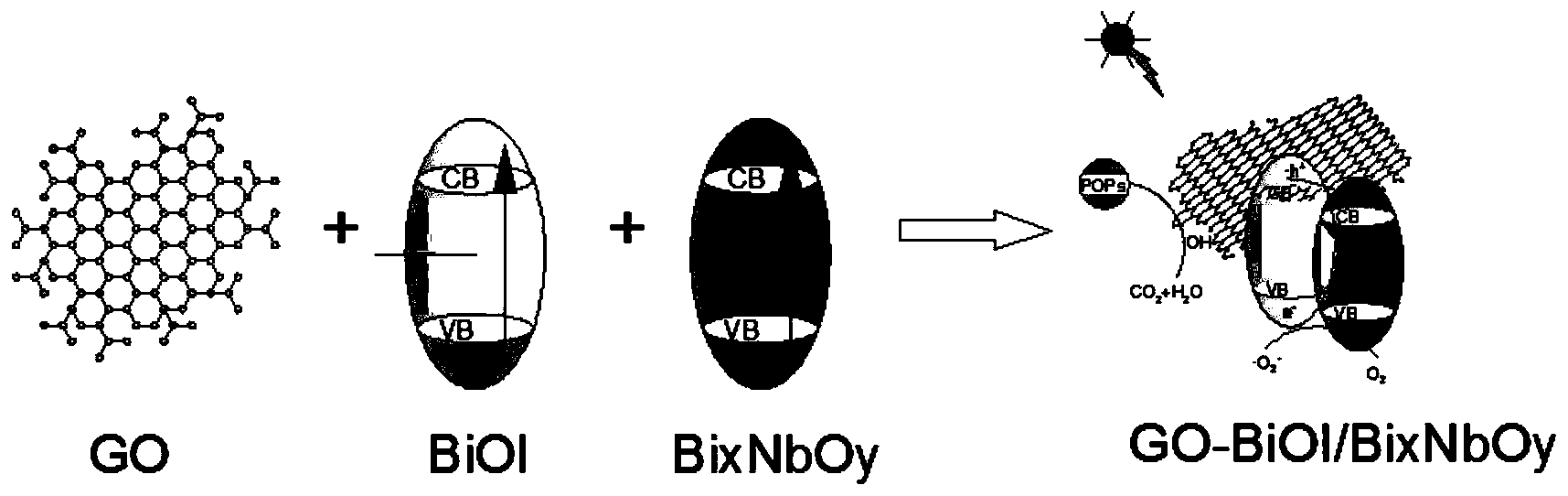 摘要:本发明公开了一种负载铋系异质结的氧化石墨烯光催化材料的制备方法,包括以下步骤:首先制备BiOI/BixNbOy光催化剂和氧化石墨烯,将合成的BiOI/BixNbOy异质结催化剂负载于氧化石墨烯纳米片上,以负载后的石墨烯纳米片为前驱体,对预冷冻处理后的化合物进行真空干燥处理,得到具有高强度的负载铋系异质结的氧化石墨烯光催化材料。本发明负载铋系异质结的氧化石墨烯光催化材料具有高强度、高比表面积和强吸附等特点,可以有效解决粉末状光催化剂在使用后难以分离和回收利用的难题,避免了纳米材料对环境造成的二次污染等问题;有利于提高光催化反应速率;提高了催化剂光生载流子的分离率,增加了光催化剂的的稳定性,拓宽了光谱响应范围。