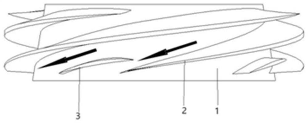 摘要:一种具有后置反向加厚分流叶片的螺旋轴流泵叶轮,本发明涉及油气混输技术领域,它包含轮毂、螺旋轴流式叶片;轮毂的外环面上呈螺旋状固定有数个螺旋轴流式叶片,数个螺旋轴流式叶片之间的空间构成流道;每个螺旋轴流式叶片的靠近出口位置处的流道内设有反向加厚分流叶片。通过分流叶片对出口处两相介质的加压及反向加厚的特点对其施力,从而提高混输泵的效率。