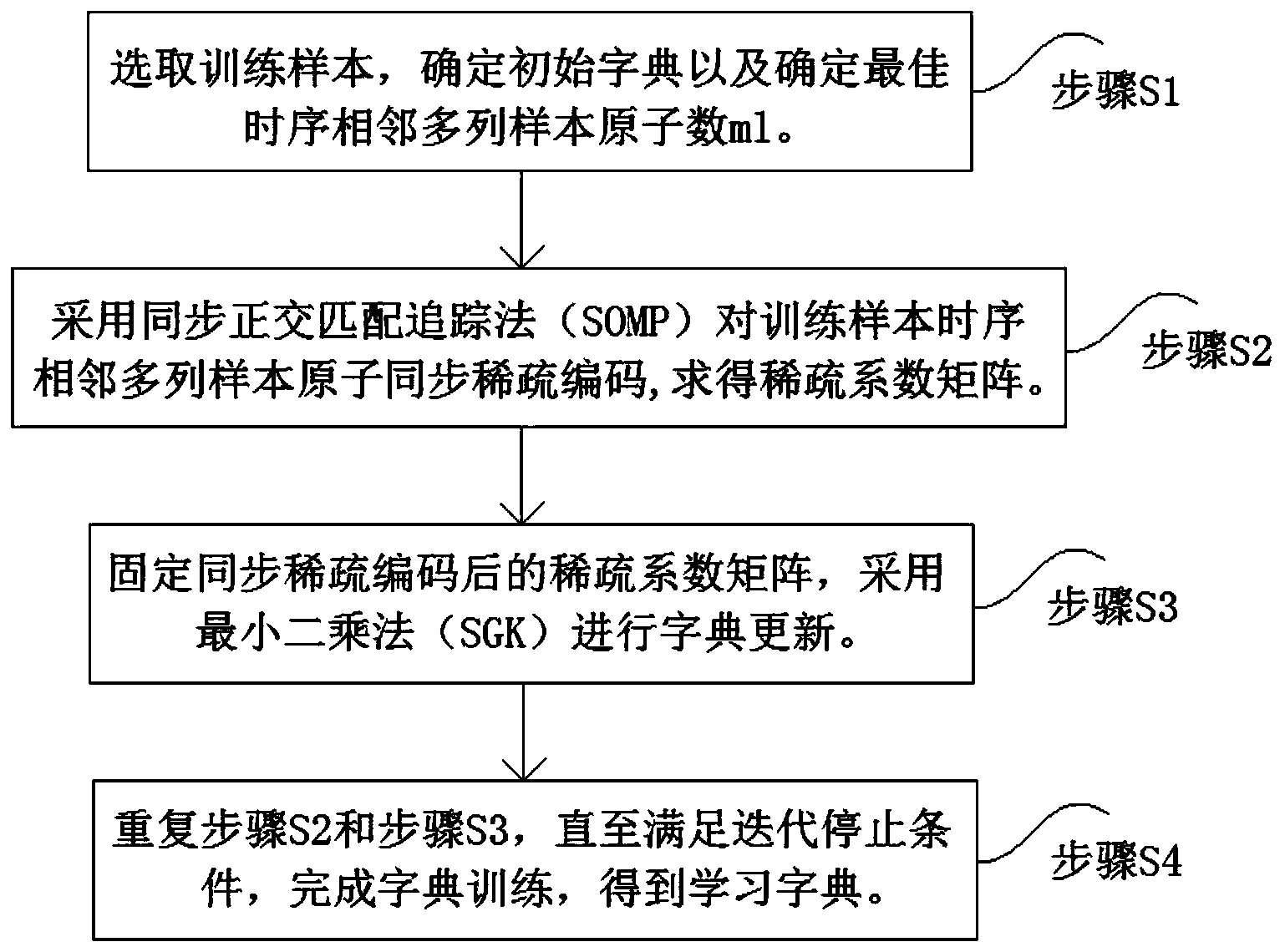 摘要:本发明属于机械振动信号处理技术领域。为了解决K‑SVD算法中字典训练时间较长的问题,本发明公开了一种机械振动信号稀疏表示的快速字典学习算法,具体包括以下步骤:步骤S1,选取训练样本确定初始字典以及确定最佳时序相邻多列样本原子数ml;步骤S2,采用同步正交匹配追踪法(SOMP)对训练样本时序相邻多列样本原子同步稀疏编码,求得稀疏系数矩阵A;步骤S3,固定同步稀疏编码后的稀疏系数矩阵,采用最小二乘法(SGK)进行字典更新;步骤S4,重复步骤S2和步骤S3,直至满足迭代停止条件,完成字典训练,得到学习字典。采用本发明的字典学习算法可以在保证振动信号压缩重构性能的情况下,大大有效提升了字典训练速率。