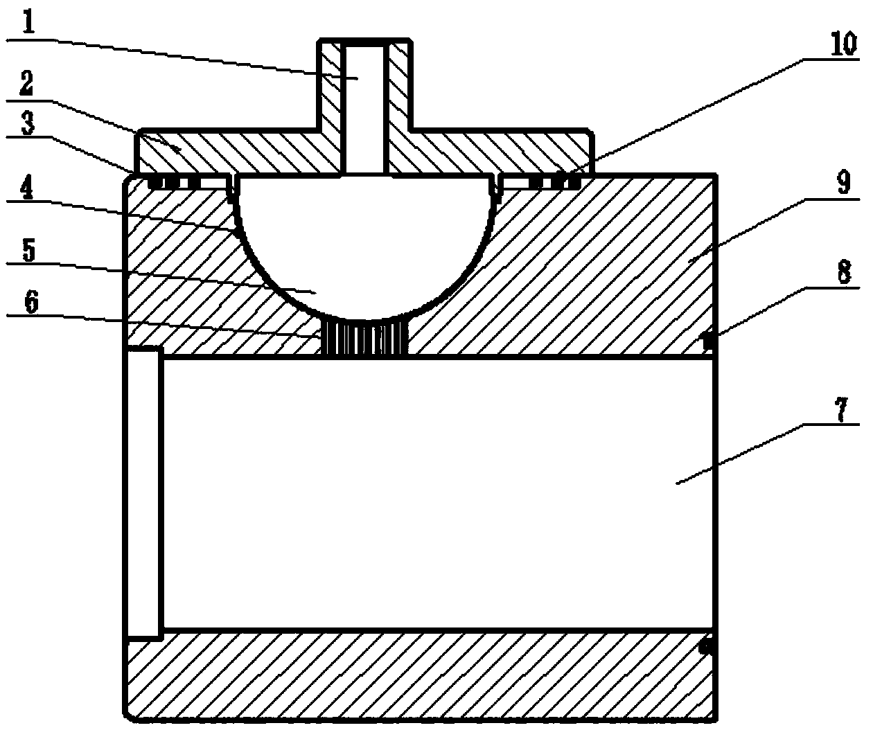 摘要:本实用新型公开了一种蜂窝式阻尼孔气囊减震器,该减震器包含:壳体,其轴向贯通设有:主油路通孔,其侧壁上设有:气囊放置腔,在该气囊放置腔的底部设有:若干与主油路通孔相通且蜂窝状分布式阻尼孔;气囊,其置于所述气囊放置腔内;以及法兰盖板,其固定在所述壳体的侧壁上,并处于气囊放置腔和气囊的顶部,且其上设有:与气囊相通的充气口,充气口采用标准充气阀连接口。其中,所述壳体的一端为高压油入口,另一端为高压油出口,其高压油入口与液压泵的出油口连通,也可与液压泵泵体做成一体。本实用新型的减震器通过蜂窝状分布式阻尼孔与气囊组合作用吸收液压泵出口压力脉动,使得液压泵输出油液平稳性显著提高。