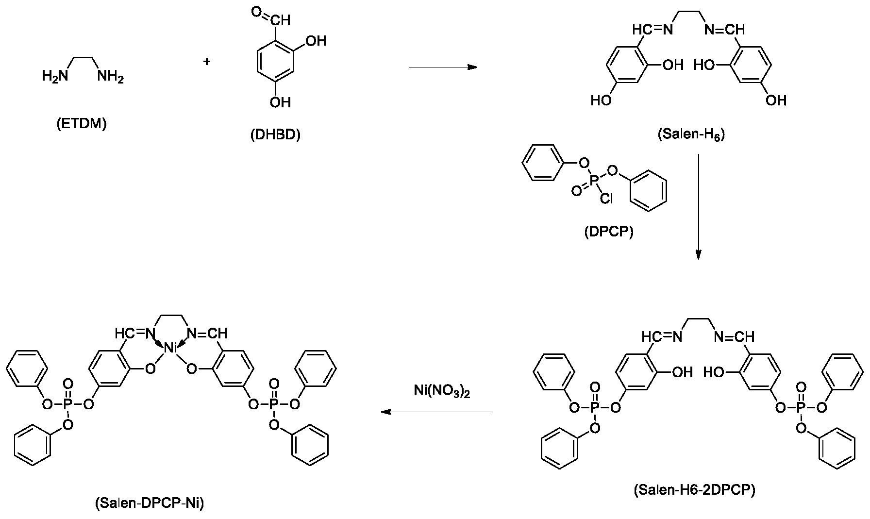 摘要:本发明公开了具有希夫碱结构的镍离子阻燃络合物及制备方法,主要涉及反应型阻燃剂领域。结构式是其中,R是本发明的有益效果在于:通过将Salen‑H6‑2DPCP与金属镍络合生成一系列阻燃络合物Salen‑DPCP‑Ni,其中的含磷有机片段在高分子材料燃烧时发挥气相阻燃机理,希夫碱与金属镍在燃烧过程分别发挥交联与催化成炭的凝聚相阻燃作用。