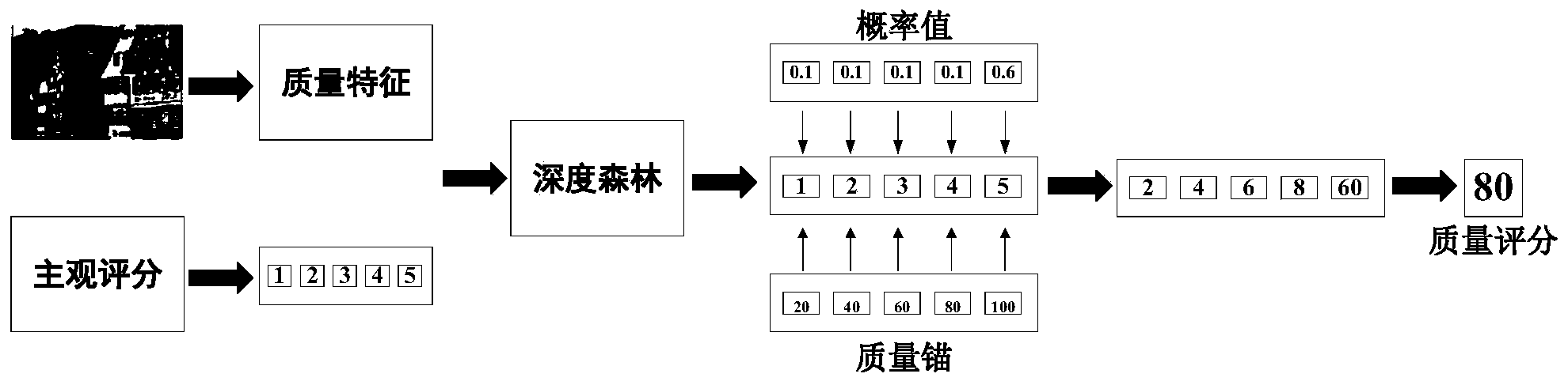 摘要:本发明公开了一种基于深度森林分类的无参考图像质量评价方法,包括:步骤1,图像分类;步骤2,提取图像的颜色质量特征;步骤3,提取图像的纹理质量特征;步骤4,利用深度森林分类模型中决策树提取特征的不同,模拟不同人对图像质量认知的差异,构建深度森林分类模型对图像质量进行分类,包括多粒度扫描森林和级联森林;步骤5,基于图像质量特征及其类别标签,对深度森林分类模型进行训练,得到测试图像归属于不同类别的概率,即不同人对图像质量主观评价结果的统计信息;步骤6,设置质量锚,结合图像归属于不同类别的概率,充分考虑主观评价过程中的差异性,得到最终的图像质量评分;本发明中所述无参考图像质量评价方法,利用深度森林模拟不同人对图像质量认知的差异,从而给出图像质量评价结果,具有重要的理论意义和实践价值。