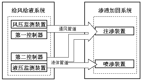 摘要:本发明提出了一种渗透加固土遗址锚孔壁的装置及使用方法,用以解决现有锚孔喷渗方法无法对孔壁均匀加固和深层加固的问题。本发明包括给风给液系统和渗透加固系统,给风给液系统通过流体管道与渗透加固系统相连接,渗透加固装置包括注渗装置,注渗装置的进口通过通风管道与风源相连接、通过液体管道与加固液罐相连接,通风管路上设有第一电磁阀和风压监控装置,液体管道上设有第二电磁阀和液压监控装置,第一电磁阀和风压监控装置均与第一控制器相连接,第二电磁阀和液压监控装置均与第二控制器相连接。本发明通过注渗装置和喷渗装置全面深层的加固了从锚‑土界面至遗址土体内部较深处的环层区域,极大程度保护了锚孔,操作简单、安装方便。