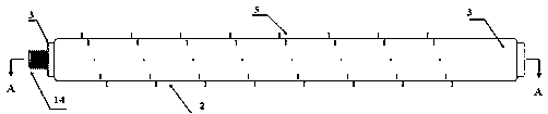 摘要:本实用新型提出了一种加固土遗址锚孔壁的注渗装置,用以解决现有锚孔喷渗方法无法对孔壁均匀加固和深层加固的问题。本实用新型包括注渗管、胀缩囊和渗透针,胀缩囊两端通过密封装置与注渗管密封连接,胀缩囊与注渗管之间设有空腔;注渗管一端为进口、另一端封闭,注渗管上设有若干个通孔和通针孔I,注渗管通过通孔与空腔相连通,胀缩囊上设有与通针孔I相对应的通针孔II,渗透针的尖端通过通针孔II与胀缩囊固定连接并伸出胀缩囊,渗透针的尾端通过通针孔I活动设置在注渗管上且渗透针的尾端与注渗管相连通。本实用新型通过控制胀缩囊的膨胀和收缩,利用渗透针将加固液沿锚孔的深度直接输入至孔壁的土层中,可对锚孔壁达到全面和深层的渗透加固。