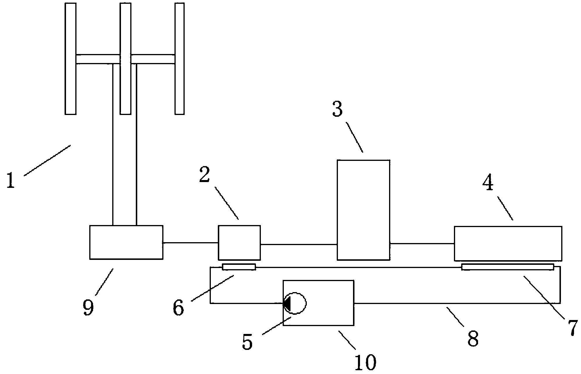 摘要:本实用新型属于风能发电技术领域。为了解决由于风能存在间歇性和稳定性差的问题,而导致常规风力发电系统存在发电稳定性差的问题,本实用新型提出了一种风力发电系统。该风力发电系统包括风机、空气压缩机、蓄能单元、透平发电机以及循环泵、吸热单元和放热单元;空气压缩机的输入端与风机的输出轴连接,空气压缩机的输出端与蓄能单元的输入端连接,蓄能单元的输出端与透平发电机连接;循环泵、吸热单元以及放热单元之间通过充有介质的管道连接形成回路,吸热单元与空气压缩机连接用于介质吸收空气压缩机运转过程中产生的热量,放热单元与透平发电机连接用于介质释放热量驱动透平发电机运转。本实用新型的发电系统可以利用风能实现持续平稳发电。