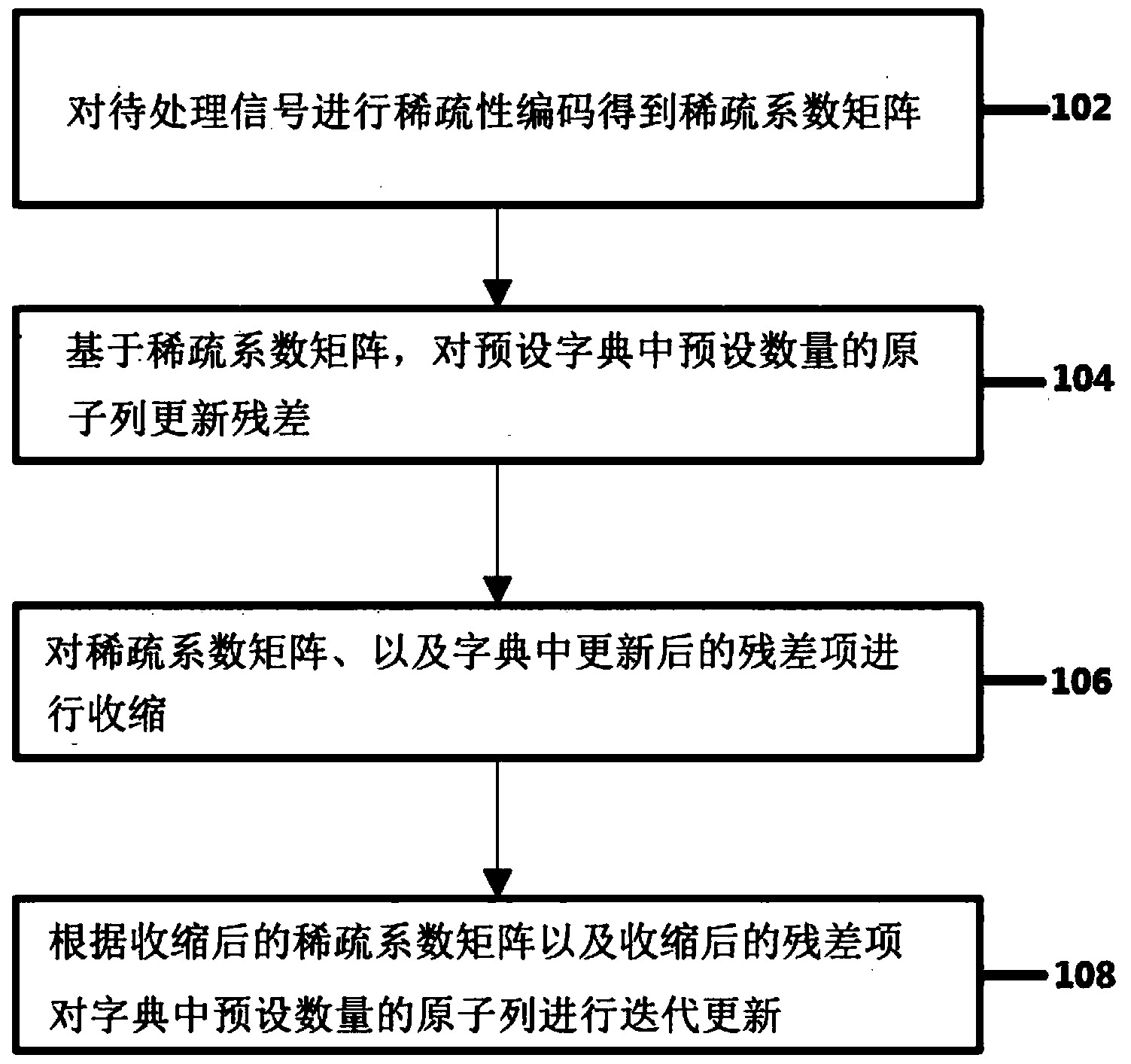 摘要:本发明属于字典更新领域,具体涉及一种多原子字典的更新方法。为了解决SGK字典通过单列字典更新,计算复杂度高,时间消耗多的问题。本发明公开了一种多原子字典的更新方法,包括:对待处理信号进行稀疏性编码得到稀疏系数矩阵;基于稀疏系数矩阵,对预设字典中预设数量的原子列更新残差;对稀疏系数矩阵、以及字典中更新后的残差项进行收缩;根据收缩后的稀疏系数矩阵以及收缩后的所述残差项对所述字典中预设数量的原子列进行迭代更新,在达到迭代停止条件的情况下得到更新后的字典。本发明提出的基于多原子字典的更新方法对多原子字典学习效率的进一步提高,减少了单次迭代的计算量,从而加快了字典学习的速度。