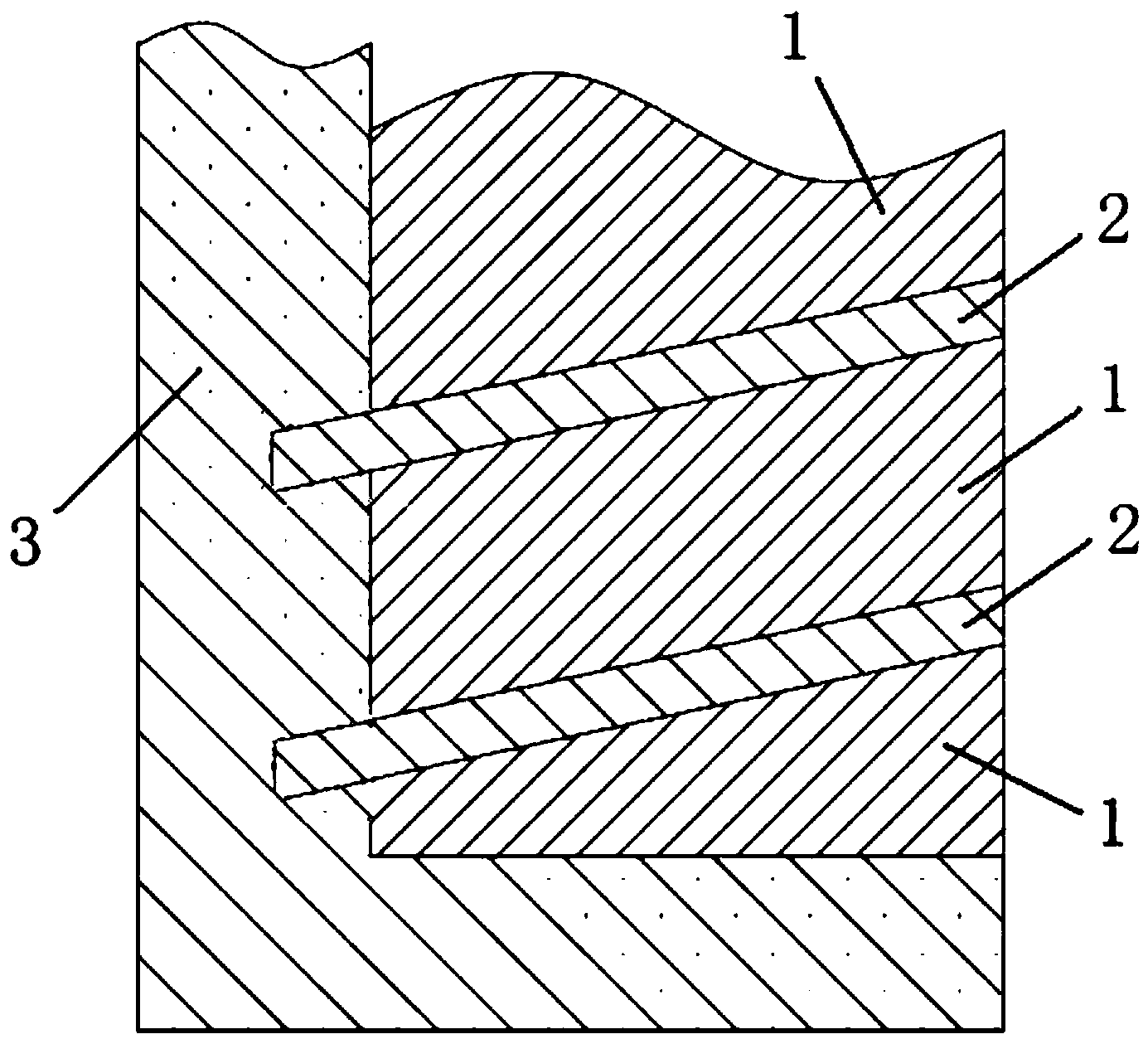 摘要:本实用新型属于土遗址加固技术领域,具体涉及一种用于土遗址裂隙修复的注浆结石体。为了解决采用目前的常规方法进行土遗址裂隙修复时,形成的注浆结石体与裂隙两侧土体壁面存在干缩分异、粘结不够牢固的问题,本实用新型公开了一种用于土遗址裂隙修复的注浆结石体。该注浆结石体为复合体结构,包括基体和膨胀体;其中,所述基体与所述膨胀体直接接触,并且裂隙两侧的土体直接与所述基体接触,所述膨胀体具有膨胀性。采用本实用新型结构的注浆结石体对土遗址裂隙进行浇筑修复,可以大幅度提高注浆结石体与裂隙两侧土体壁面粘结的牢固性,获得良好的修复效果。