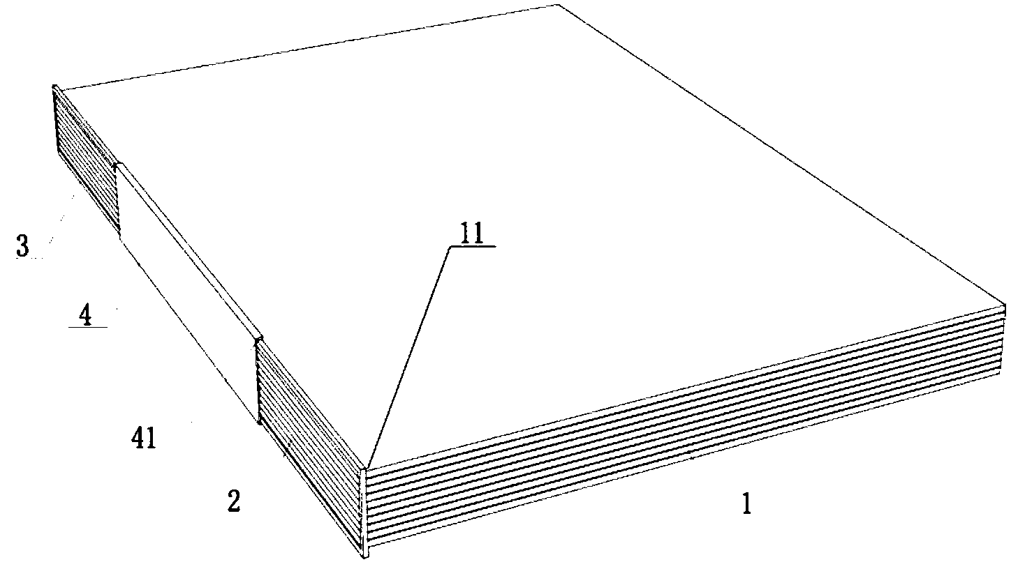摘要:本发明涉及文具用品,主要涉及一种活页装订装置及方法,包括活页纸,活页纸对折形成书帖,活页纸的折弯处为书帖脊部,沿着书帖脊部的内侧设有夹紧部件,夹紧部件两端部伸出书帖脊部,并通过装订部件安装在装订背板上,所述的夹紧部件为夹紧杆件或夹紧绳索。本发明的装订过程不锁线,不涂胶,不打孔,不用钉书针,装订工序少,操作过程简单快捷,不用专业设备,使用者可以进行自助式装订;且能够在活页式装订和固定式装订之间进行转换,可多次重复使用,能够达到传统装订方式的一样的使用效果。